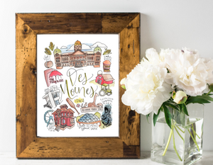 Des Moines, IA Art Print | Iowa Watercolor Art Print | Wall Hanging Artwork Decor