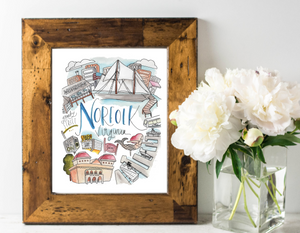 Norfolk, VA Art Print | Virginia Watercolor Art Print | Wall Hanging Artwork Decor 5x7 8x10 11x14